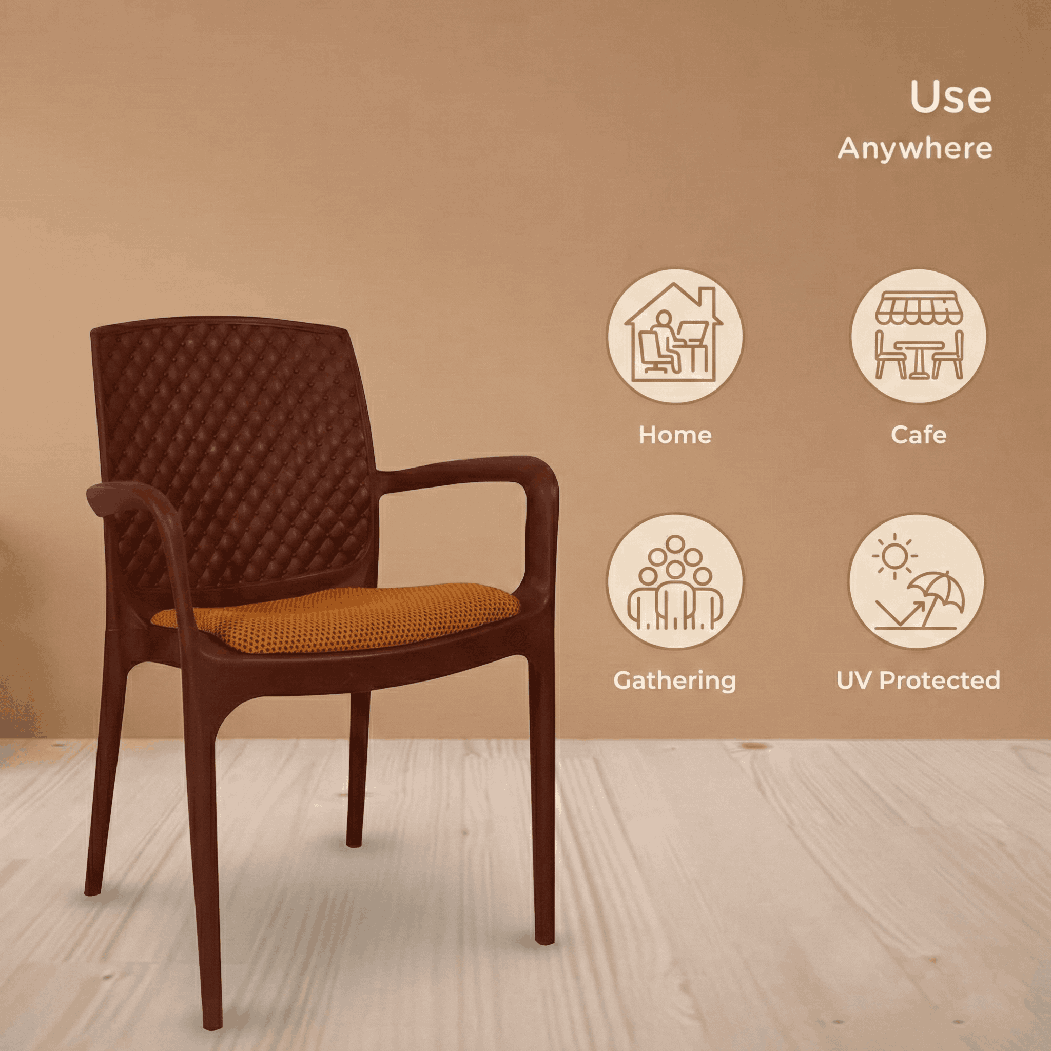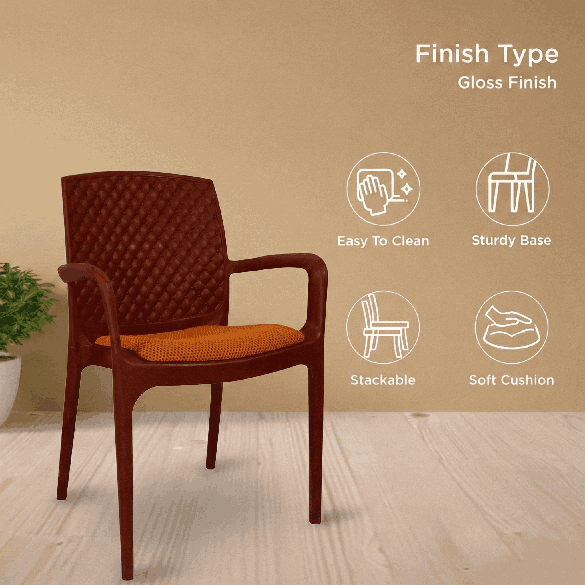 Best design full plastic Chair with Cushions from the house of SAAB Moulded Furniture Pakistan.