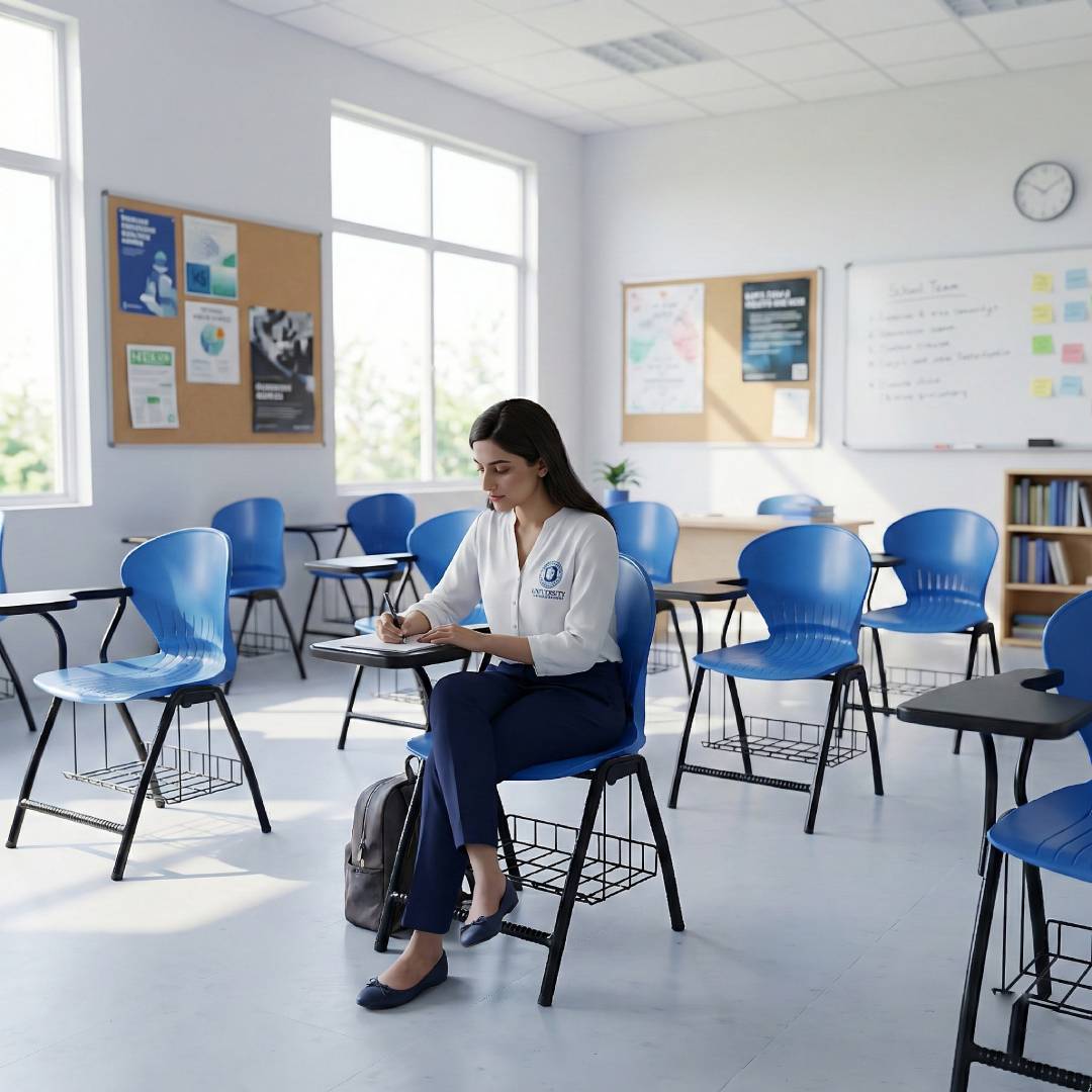 SAAB S-06-SB Peacock Shell Study Chair with Bookshelf. Manufactured with the best material easy sitting solution with strong study arm and steel rack below the seat for keeping extra stuff like books etc. Provided with footrest at the bottom as well to give you extra comfort and easy to sit for a longer time period without getting tired.