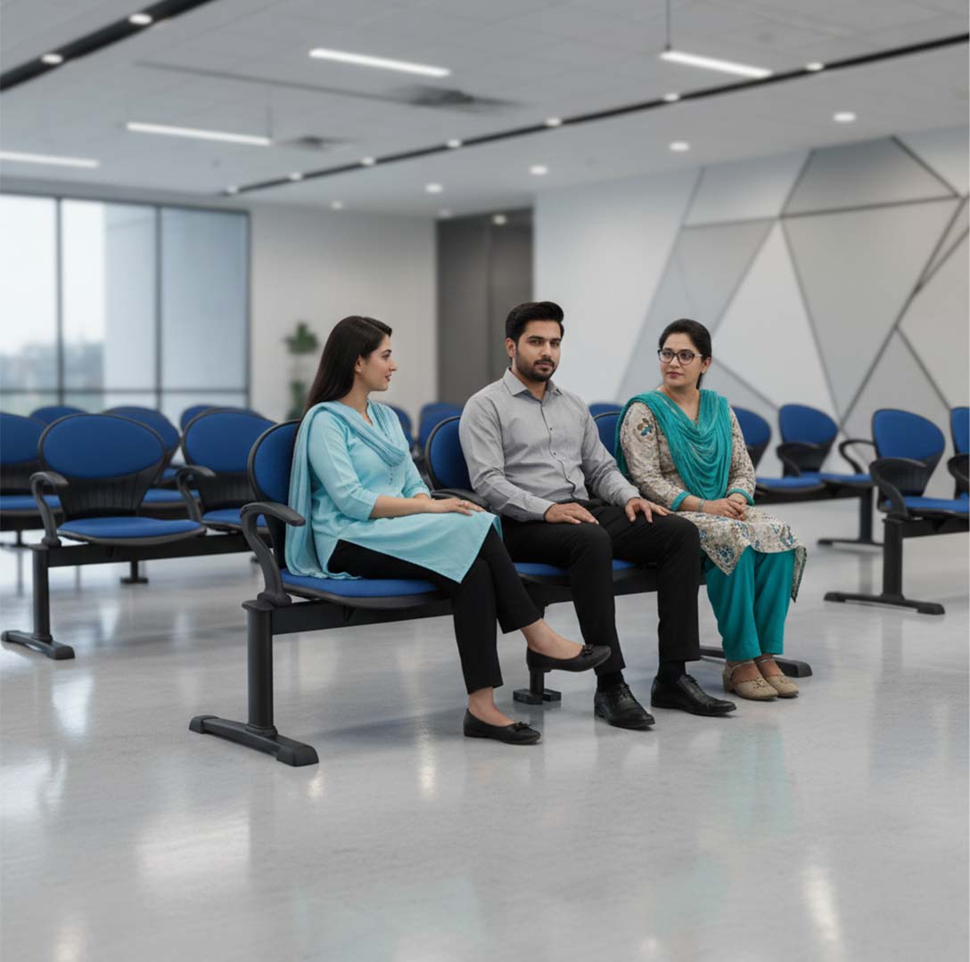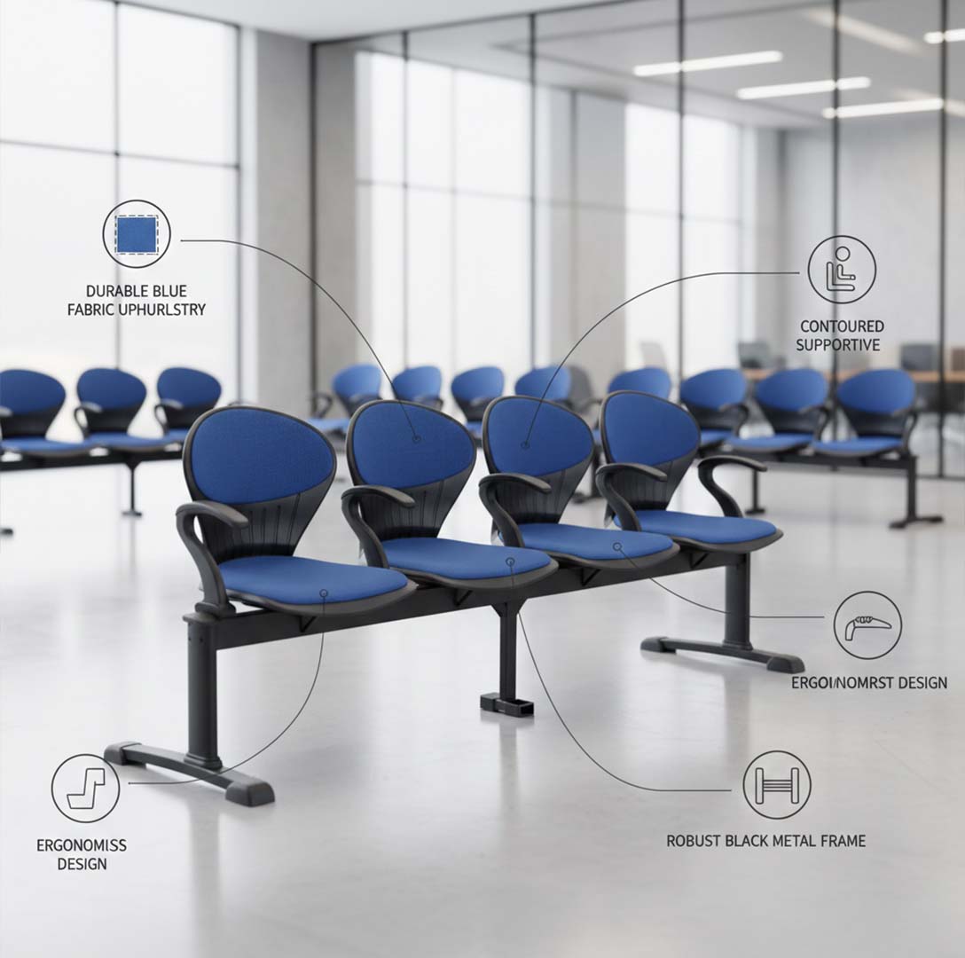 SAAB S-257-HAC Peacock Visitor Sofa 4-Seater Double Channel with Arms & Cushion and with Steel Legs. Best sitting solution for public places, schools, colleges, and commercial areas. Manufactured with pure material which gives it extra life and support.