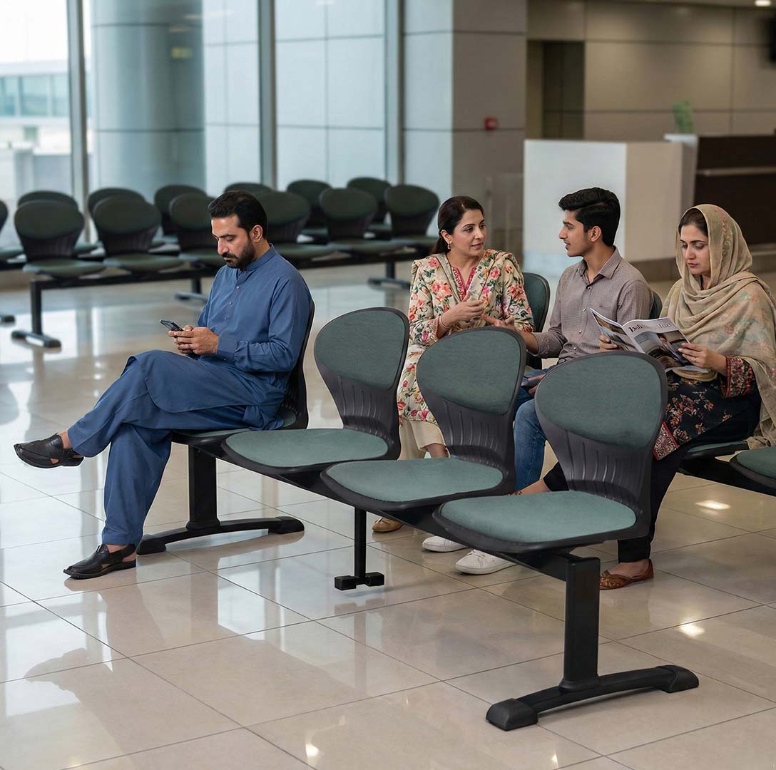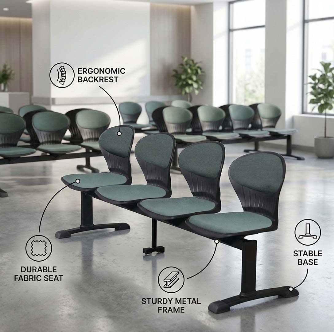 SAAB S-257-HC peacock visitor sofa 4-seater double channel with cushion with steel legs. Best sitting solution for public places, schools, colleges and commercial areas. Manufactured with pure material which gives it extra life and support.