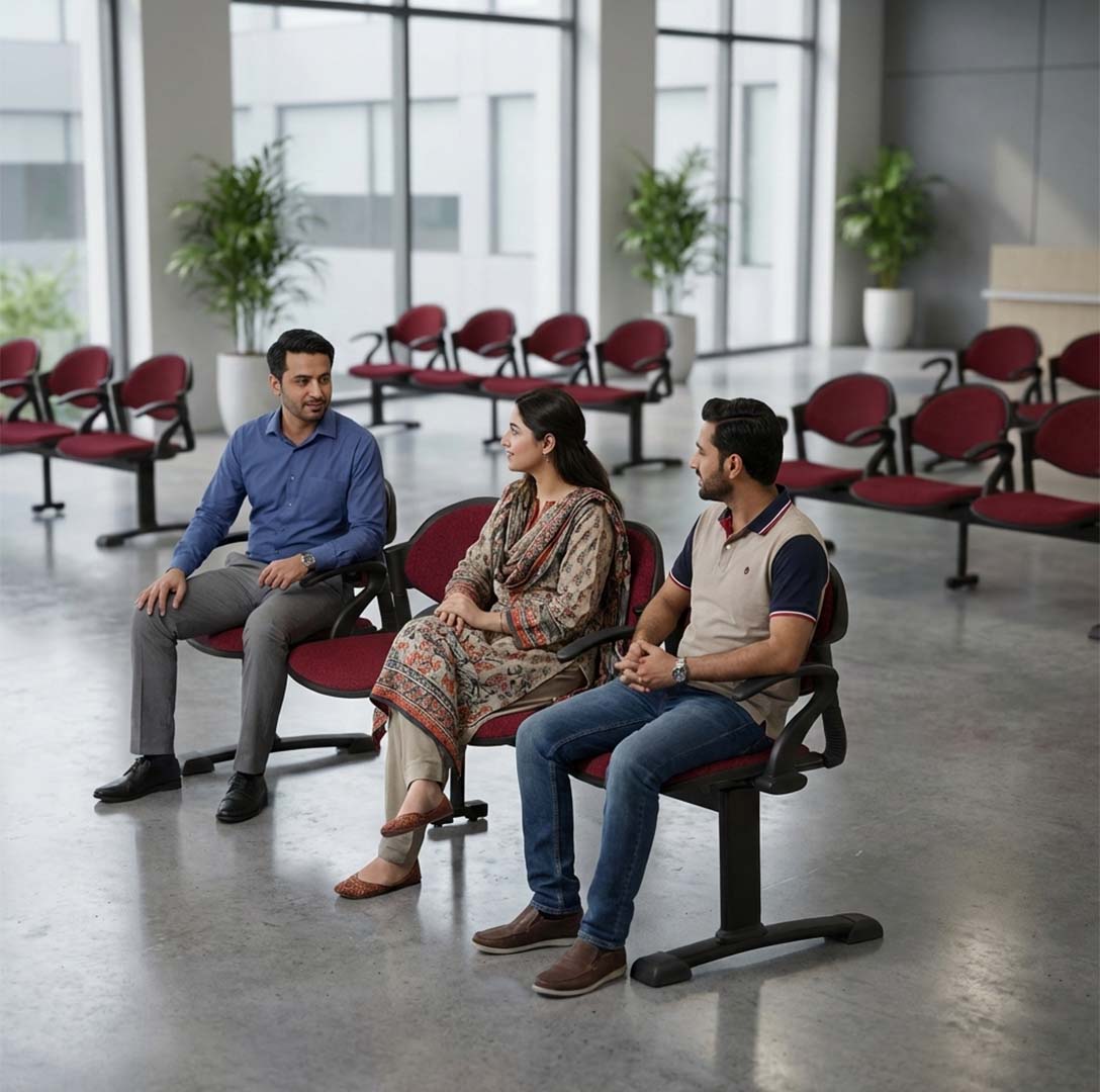 Visitor Sofa 4-Seater Double Channel with Cushion & Arms (Comforto S-10-HAC ). Best sitting solution for public places, schools, colleges and commercial areas. Manufactured with pure material which gives it extra life and support from SAAB Pakistan.